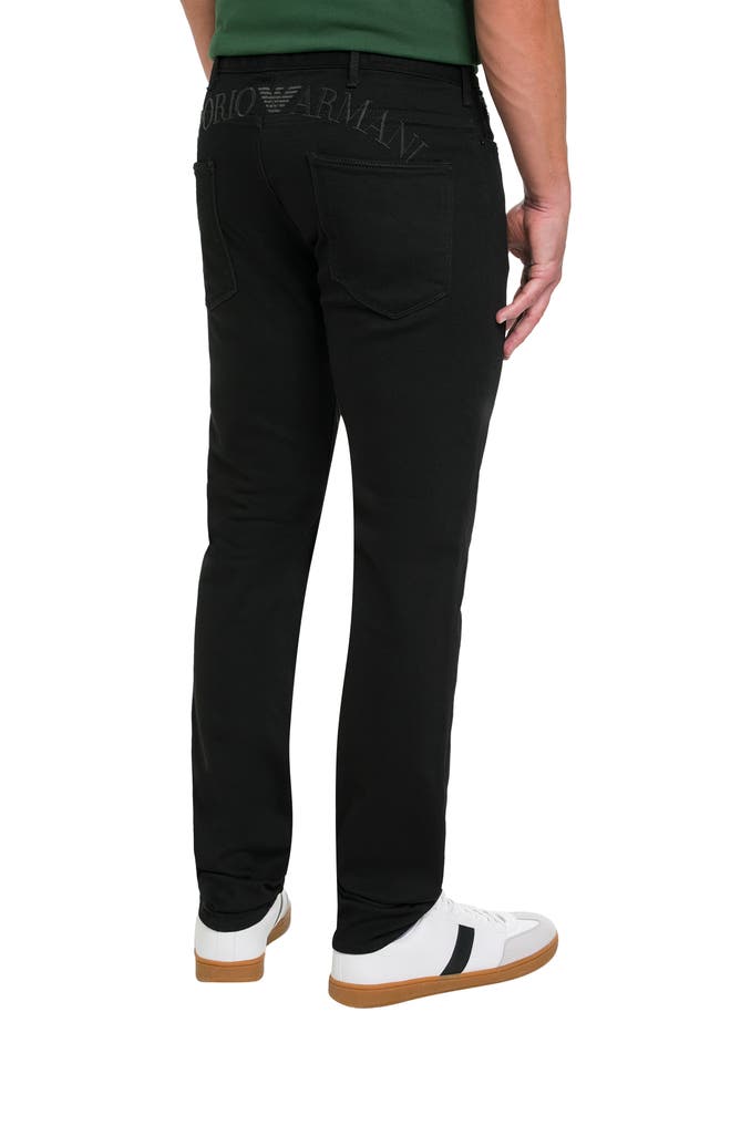 Mit der schlanken Passform und dem zeitlosen Design ist die schwarze Jeans von EMPORIO ARMANI ein Must-Have für jeden Mann. Hergestellt aus hochwertigem Denim mit einem Hauch von Elasthan bietet sie nicht nur einen optimalen Tragekomfort, sondern punktet auch mit feinen Details wie Stickereien an den Taschen.