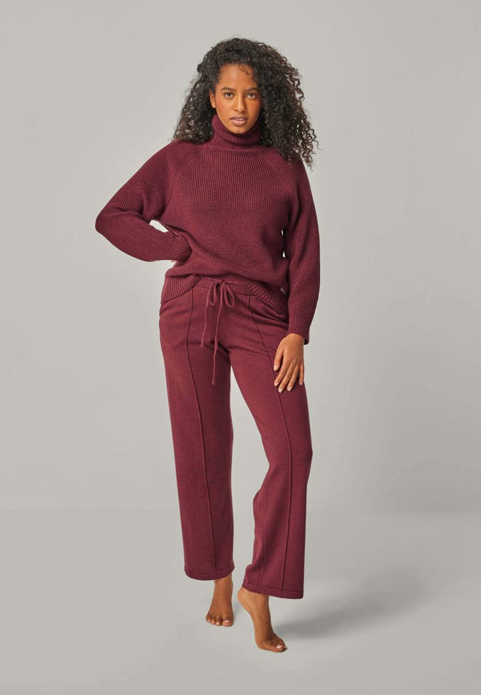 ants Elisa ist aus 100% Merino gestrickt. Sie hat eine abgesteppte Biese im Vorderteil und einen eingestrickten Tunnelzug am Bund. Das Bein ist gerade verlaufend und rundgestrickt ohne Seitennähte