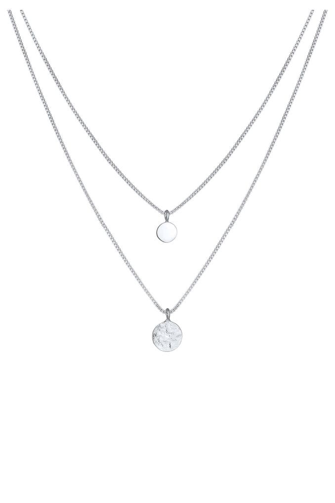 ELLIKette 2-lagig Layer Coin Plättchen Struktur 925 Silber Silber