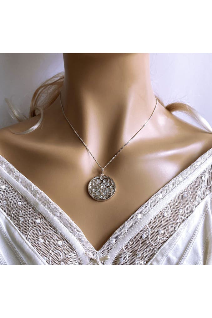 Anhänger mit Kette aus 925/- Sterling Silber Lebensblume mit Zirkonia und Perlmutt