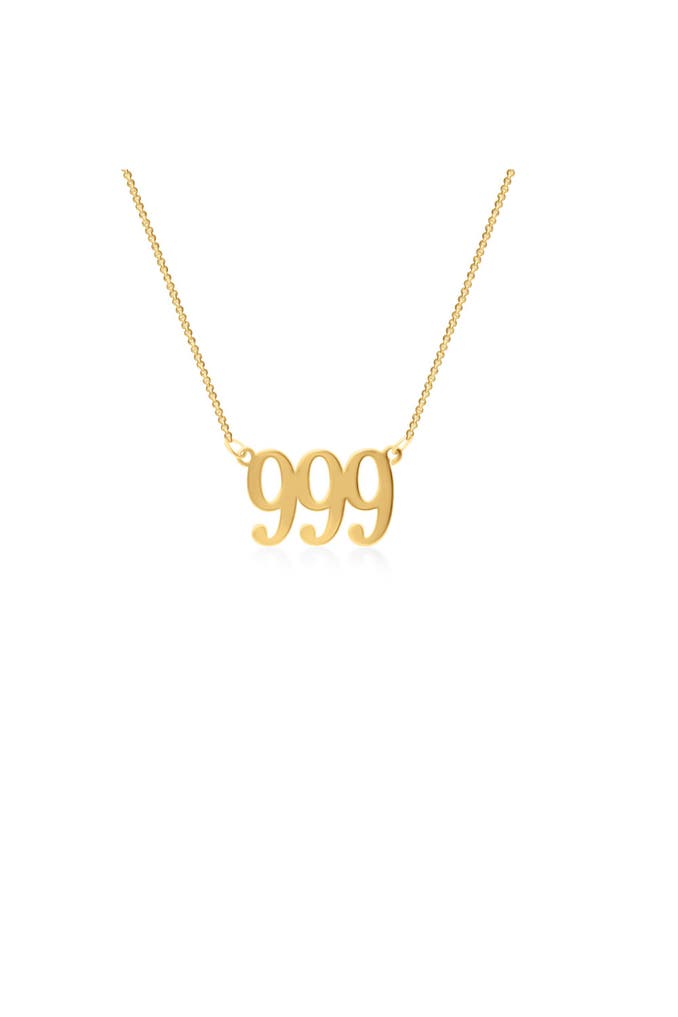 Engelszahlencollier "999" aus 925/- Sterling Silber vergoldet glänzend 45 cm lang