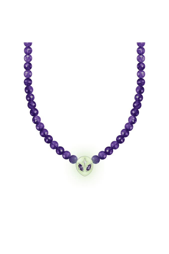 – Kette aus Beads aus imitiertem Amethyst mit dreidimensionalem Alienkopf