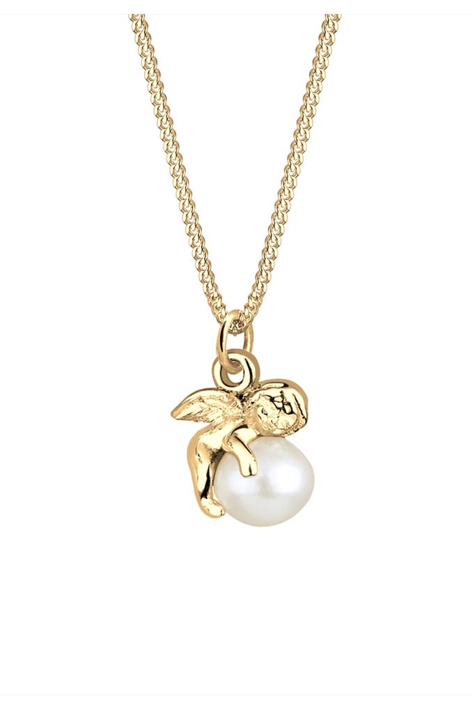 ELLIKette Anhänger Engel mit Süßwasserzuchtperle 925 Silber Gold