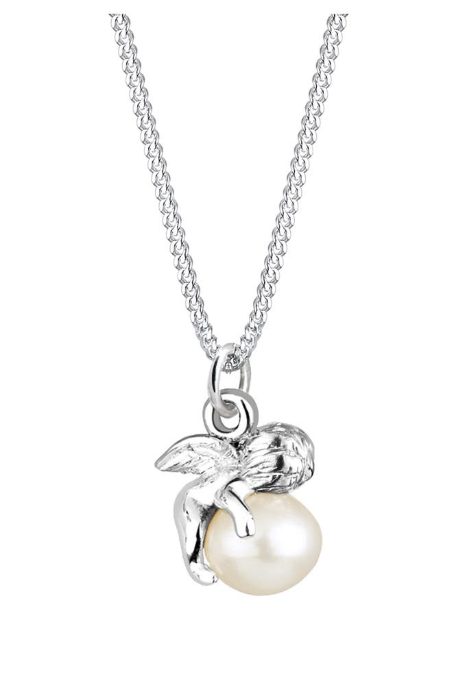 ELLIKette Anhänger Engel mit Süßwasserzuchtperle 925 Silber Weiß