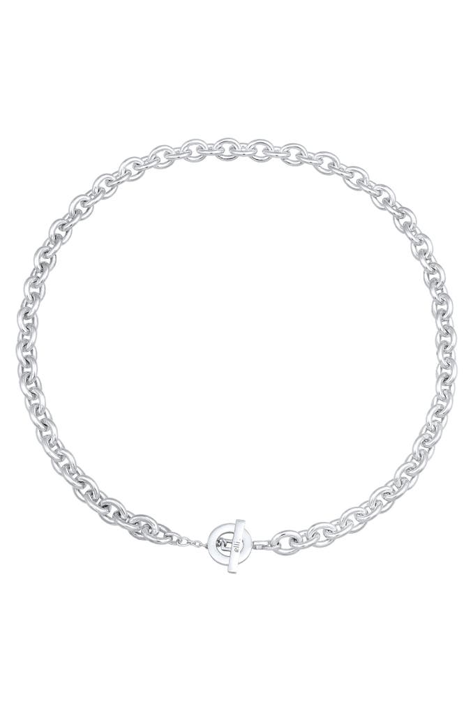 Diese kräftige Unisex Halskette, ist ein Blickfang am Dekolleté. Das ausdrucksvolle, runde Design diese Halskette präsentiert sich im sportlichen, lässigen Look. Der dekorative Knebel-Verschluss ist ein Eyecatcher und eignet sich perfekt, um ihn vorne zu tragen. Ein Schmuckstück, das durch die grobe Gliederstruktur und seine modischen Details bei Damen und Herren punktet.