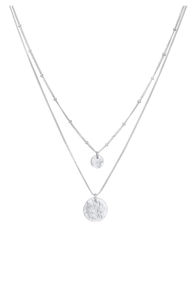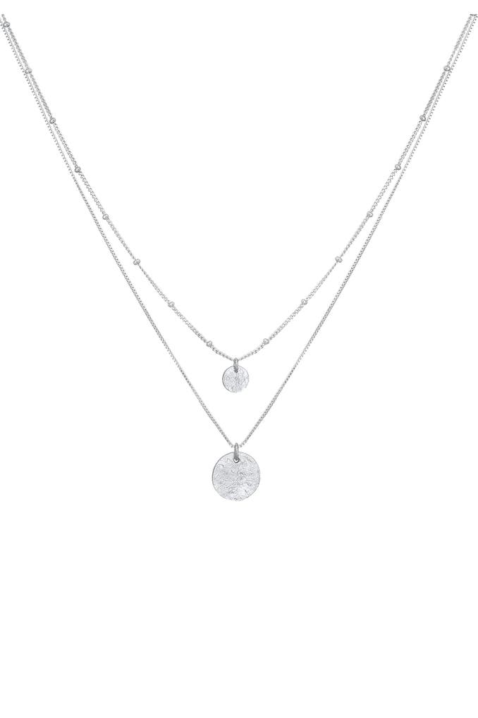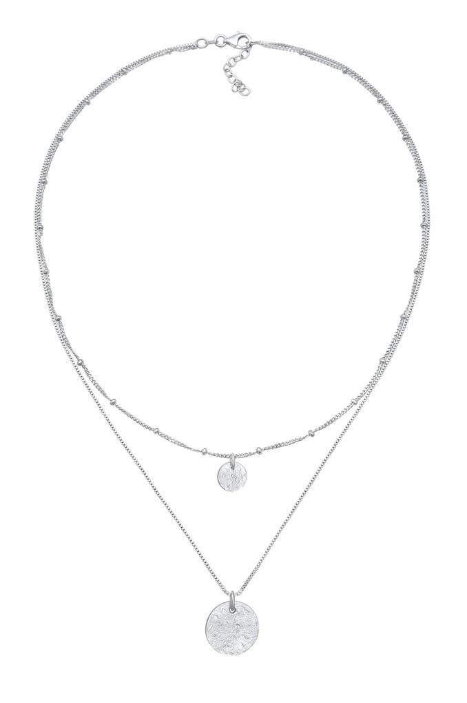 Minimalistisch und modern ist diese Layer-Kette, mit runden Plättchen Anhänger. Das zweireihige Schmuckstück besteht aus eine kurzen Kugelkette und einer langen Panzerkette. Beide Ketten werden von einem kunstvollen Plättchen Anhänger mit Hammerschlag Struktur geziert. Ein Traum für jede Fashionista und ein Must-Have in jeder Schmucksammlung. Zeitlos schön präsentiert sich diese wundervolle, Halskette im Layering Look.