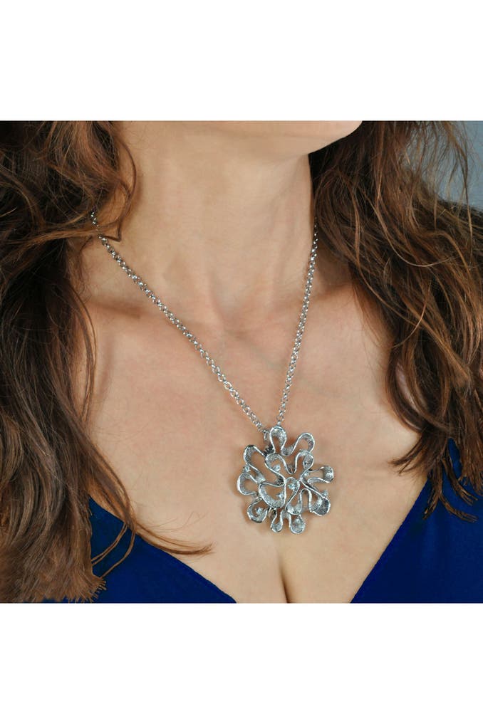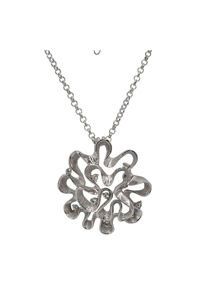 Großer Blütenanhänger an Erbskette silberfarben mit 9 Glassteinen