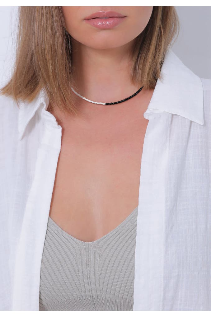 ELLIKette Choker Glasperlen Ying Yang 925 Silber Gold
