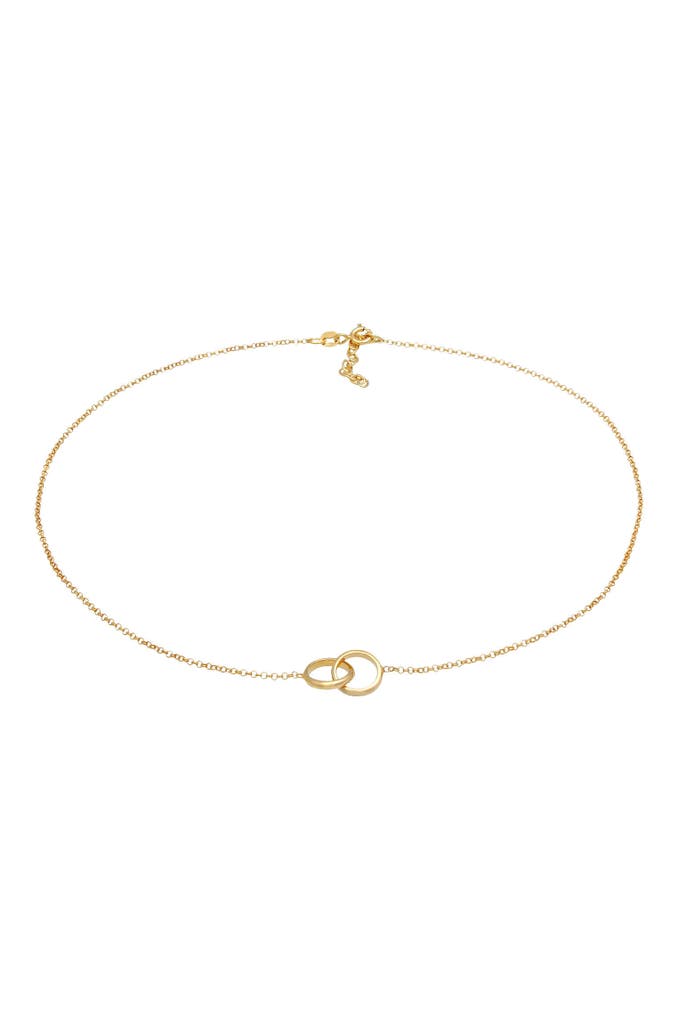 Diese filigrane Choker Kette, präsentiert zwei runde Ring Elemente zu einer Einheit. Diese zeitlose Schmuckstück mit zarten Ringlein ist ein vielseitiges Key-Piece, das jedem Outfit unaufdringlich einen exklusiven Charm verleiht.