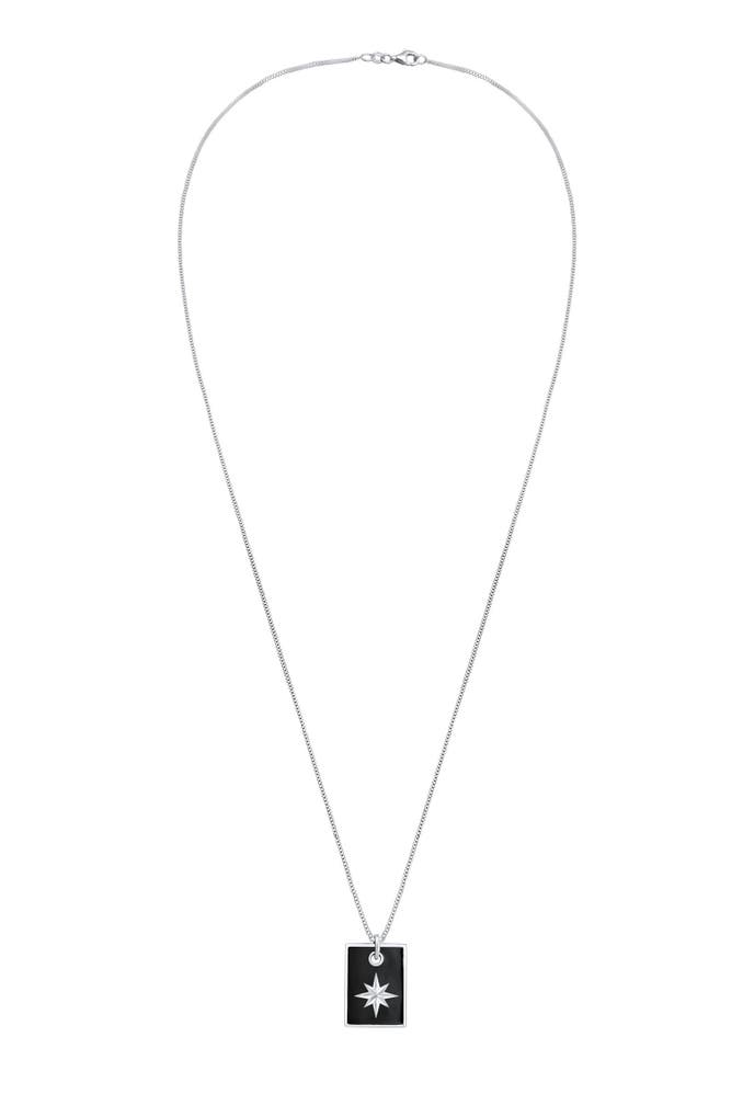 KUZZOIKette Dog Tag Emaille Schwarz Stern 925 Silber Silber