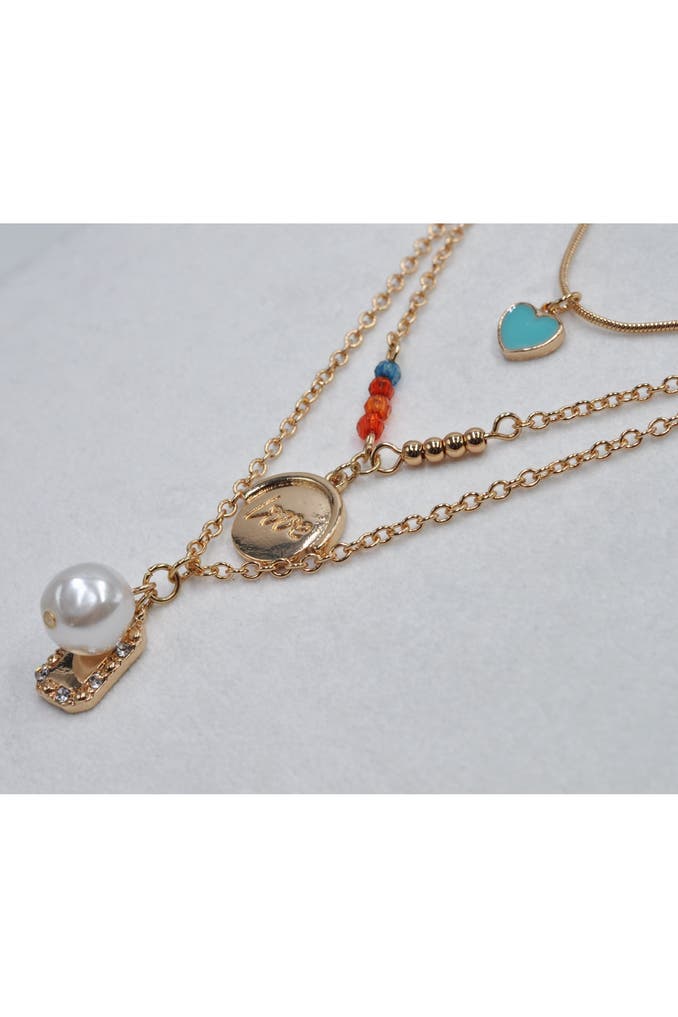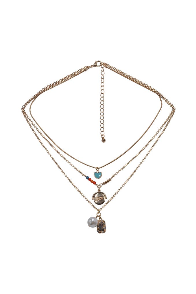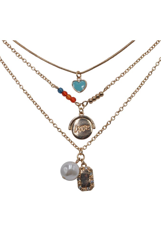 Layering-Kette dreireihig mit Anhänger Perle,Herz und Love goldfarben