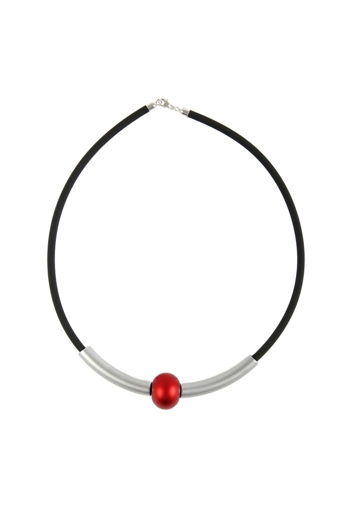 DEMarie - Damen-Collier Aluminium eloxiert rot silber Kautschukband 45cm