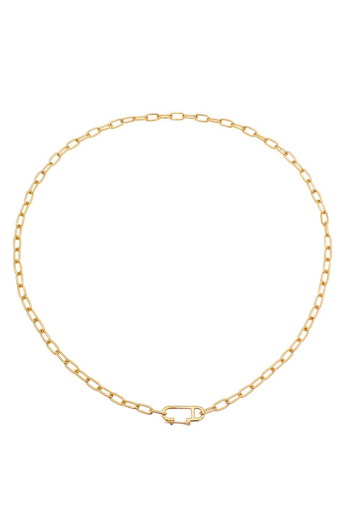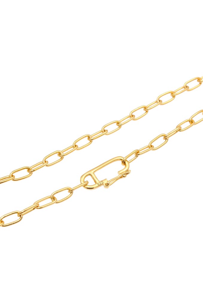 Der Ring-Verschluss der Kette kann sowohl hinten als auch vorne getragen werden und passt in jedes Kettenglied.