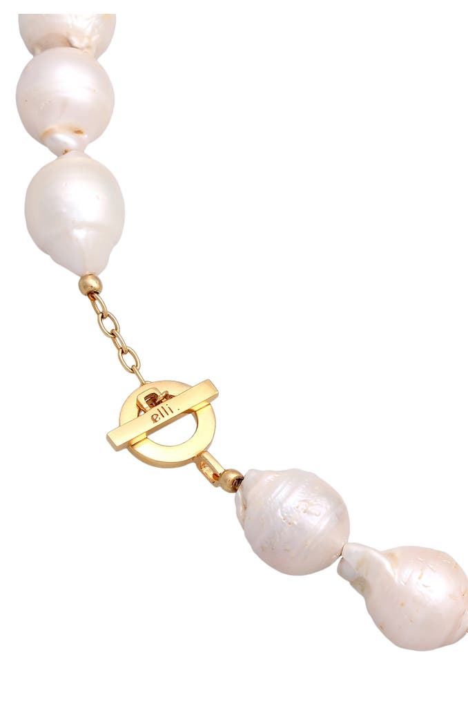 ELLI PREMIUMKette Große Barock Süßwasserperlen T-bar 925 Silber Gold