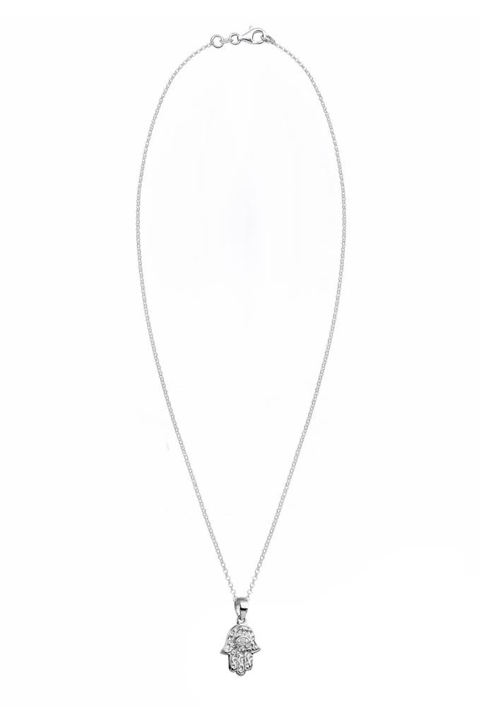 Wunderschöne Halskette mit Symbol "Hand der Fatima" aus feinstem 925er Sterling Silber gefertigt. Der Anhänger ist ein bekanntes orientalisches Glücksymbol die Hand der Fatima -Schutz vor Bösen Geistern. Tragen Sie diesen kulturellen Halsschmuck als extravagantes Schmuckstück am Dekolleté. Ein Schmuckstück mit einer so kraftvollen Bedeutung darf in keinem Schmuckkästchen fehlen und eignet sich auch perfekt als Geschenk für einen lieben Menschen.