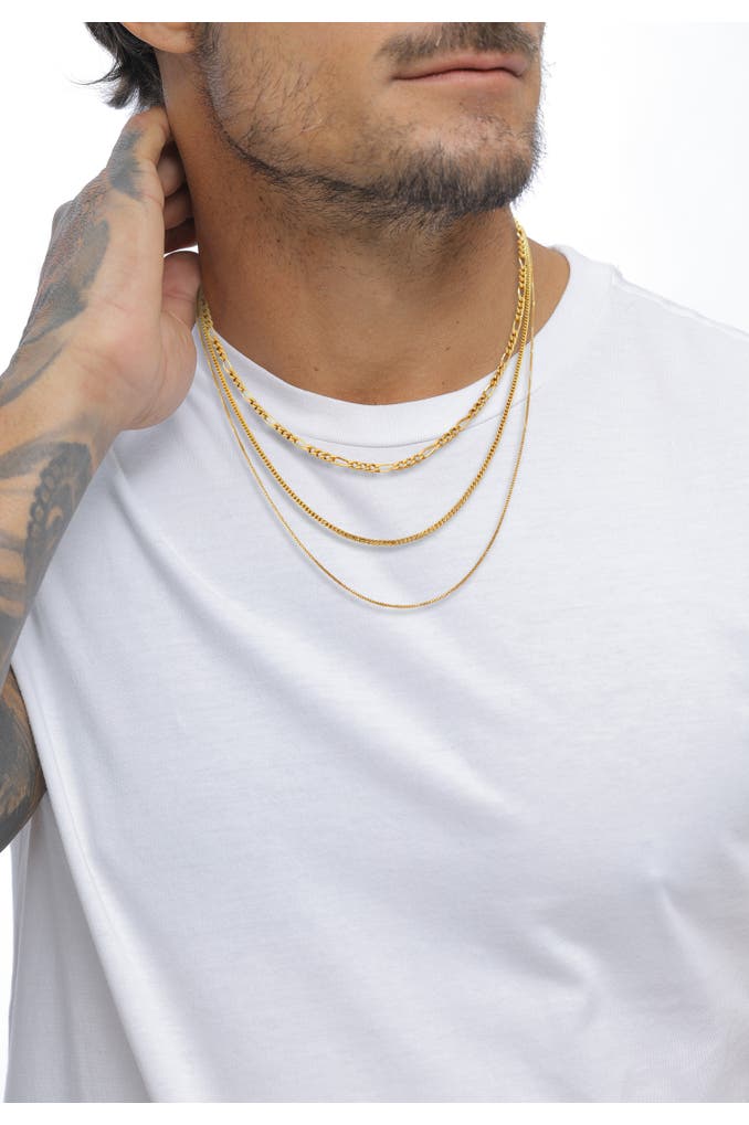 KUZZOIKette Herren Basic 3er Set 925 Sterling Silber Gold