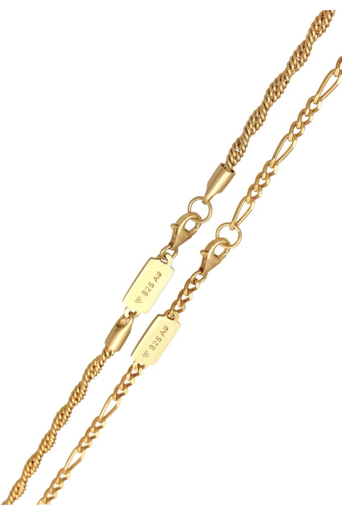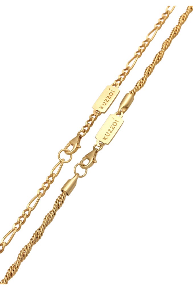 KUZZOIKette Herren Kordel Figaro 2er Set 925 Silber Gold