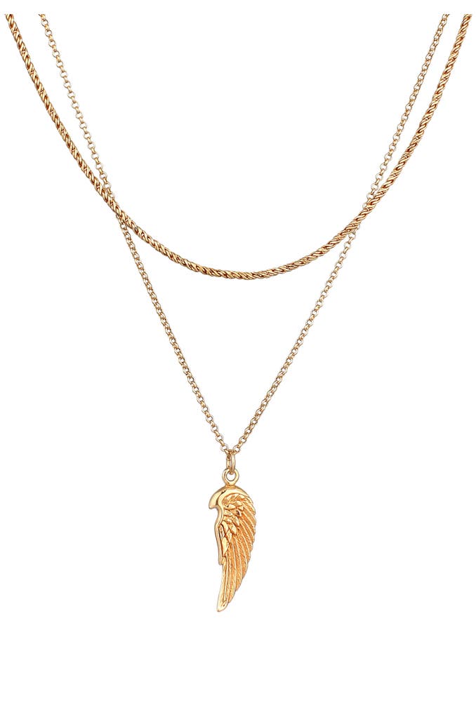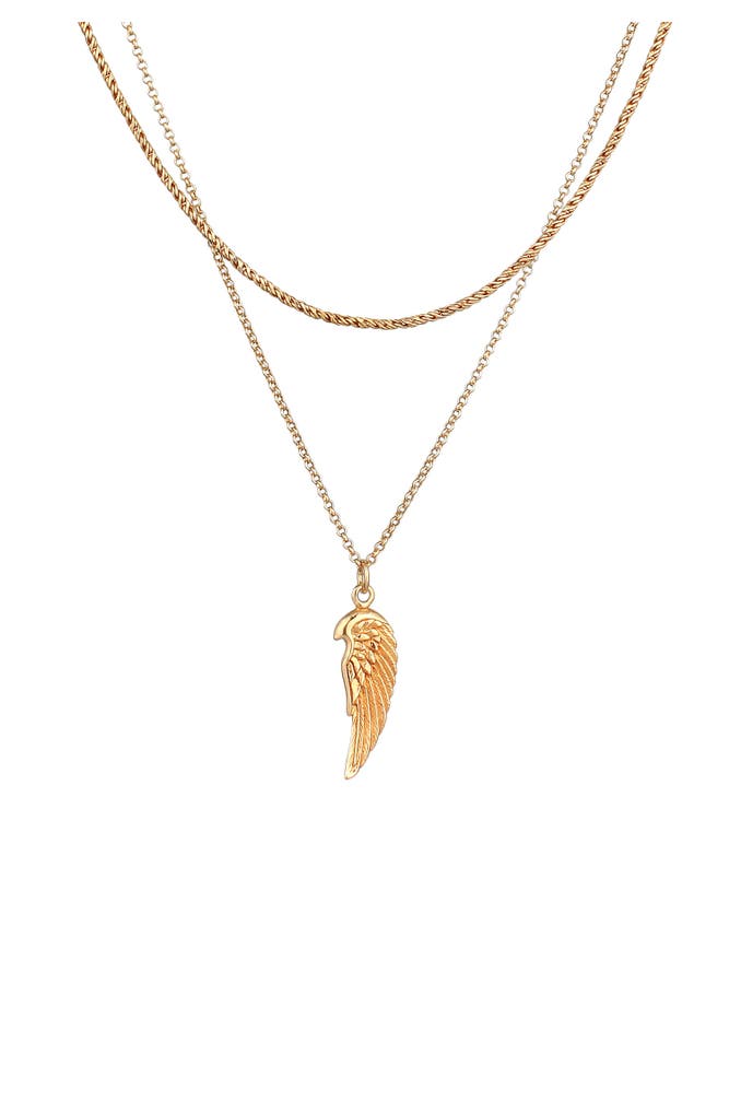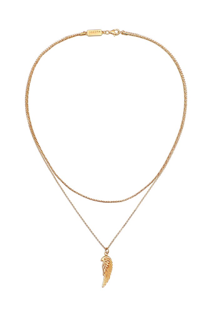 KUZZOIKette Herren Layer Kordel Erbskette Flügel 925 Silber Gold