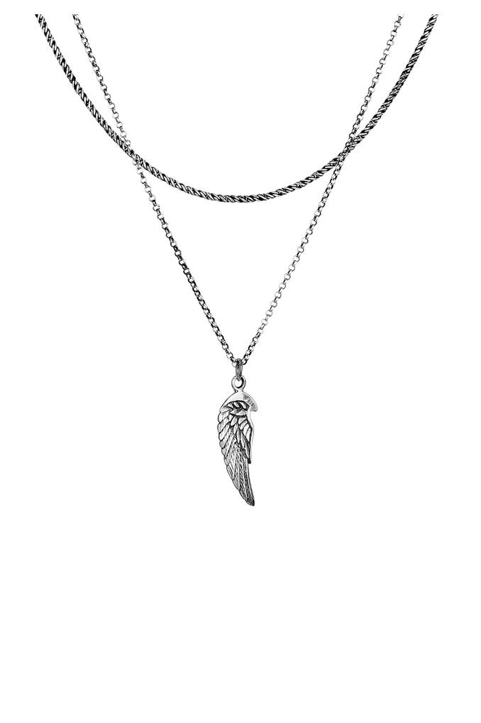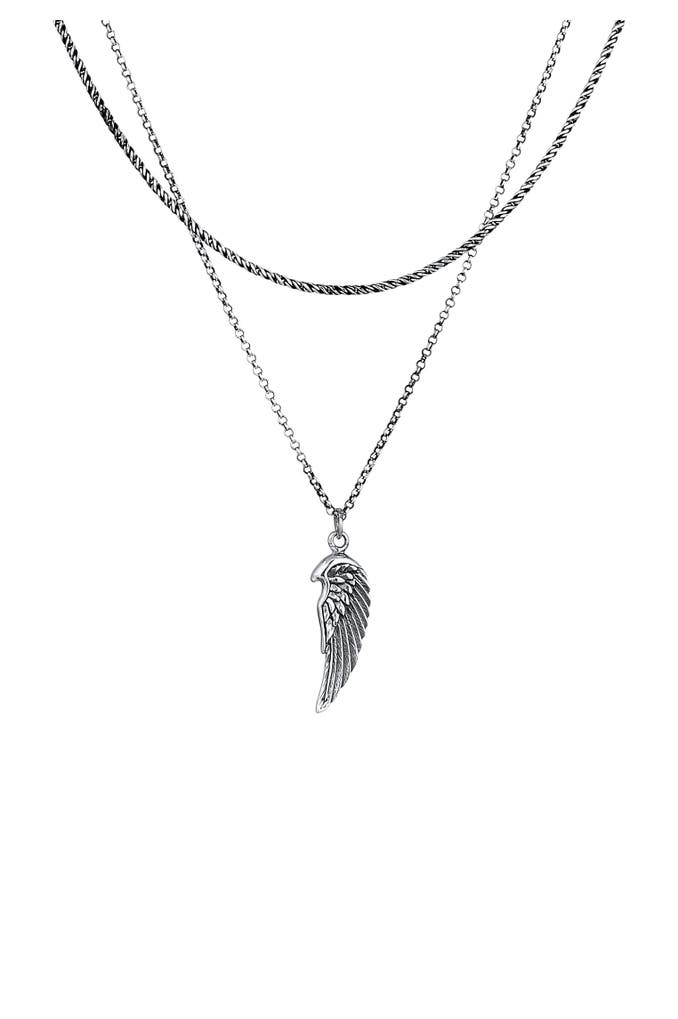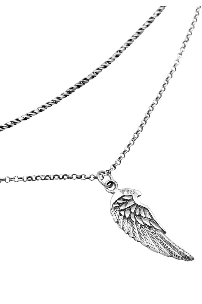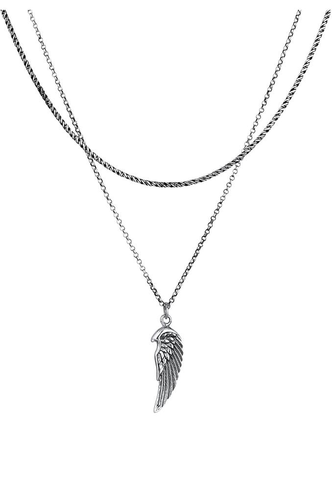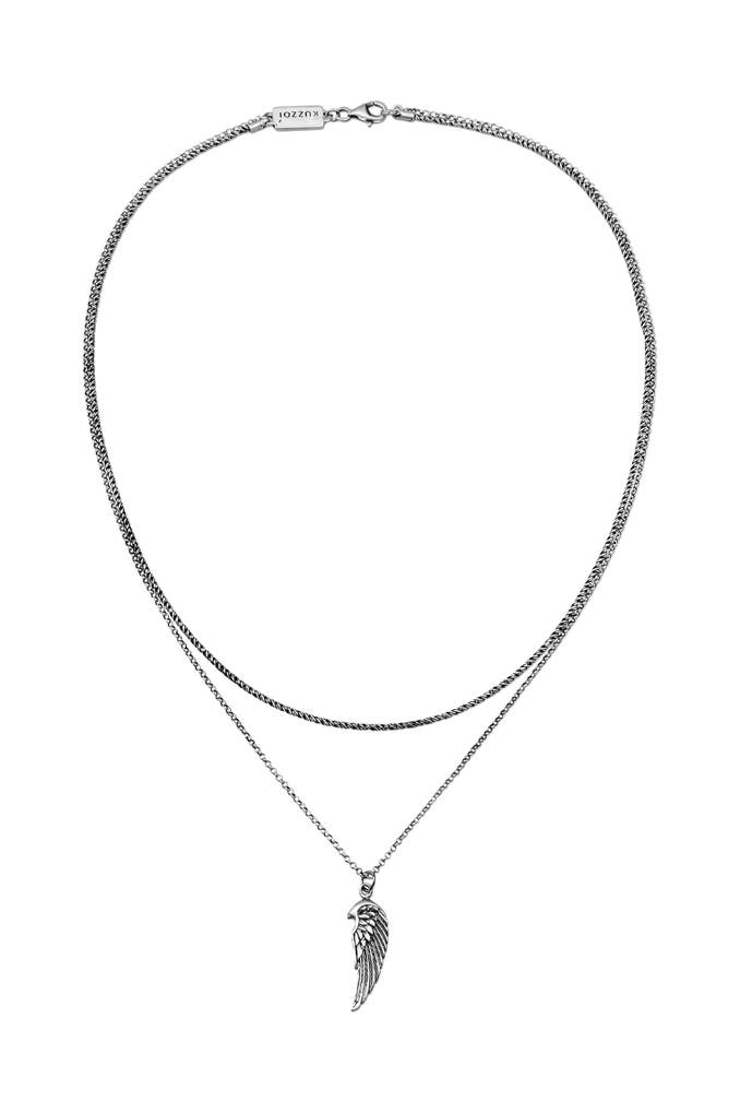 KUZZOIKette Herren Layer Kordel Erbskette Flügel 925 Silber Schwarz