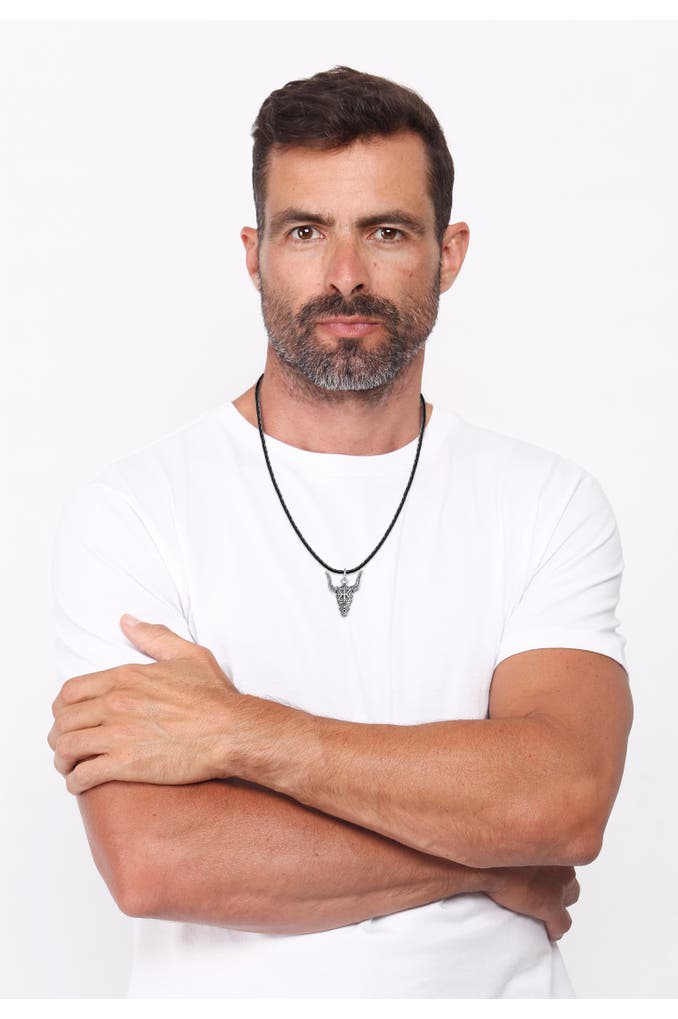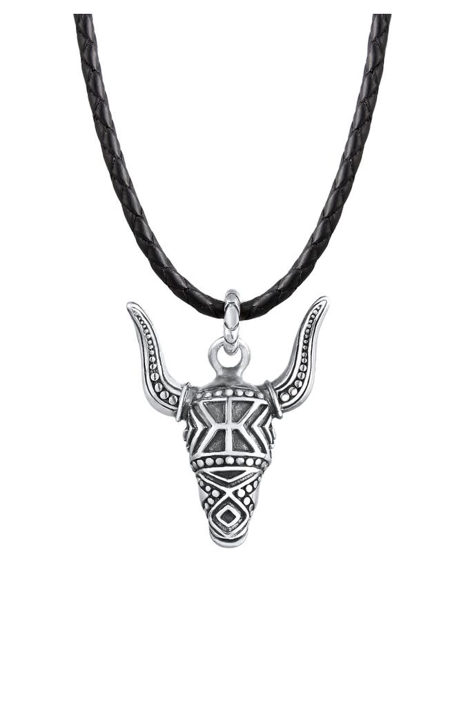 KUZZOIKette Herren Leder Stierkopf Bulle 925 Silber Silber