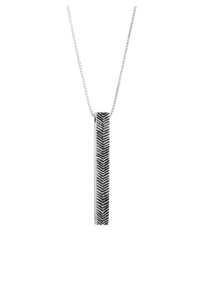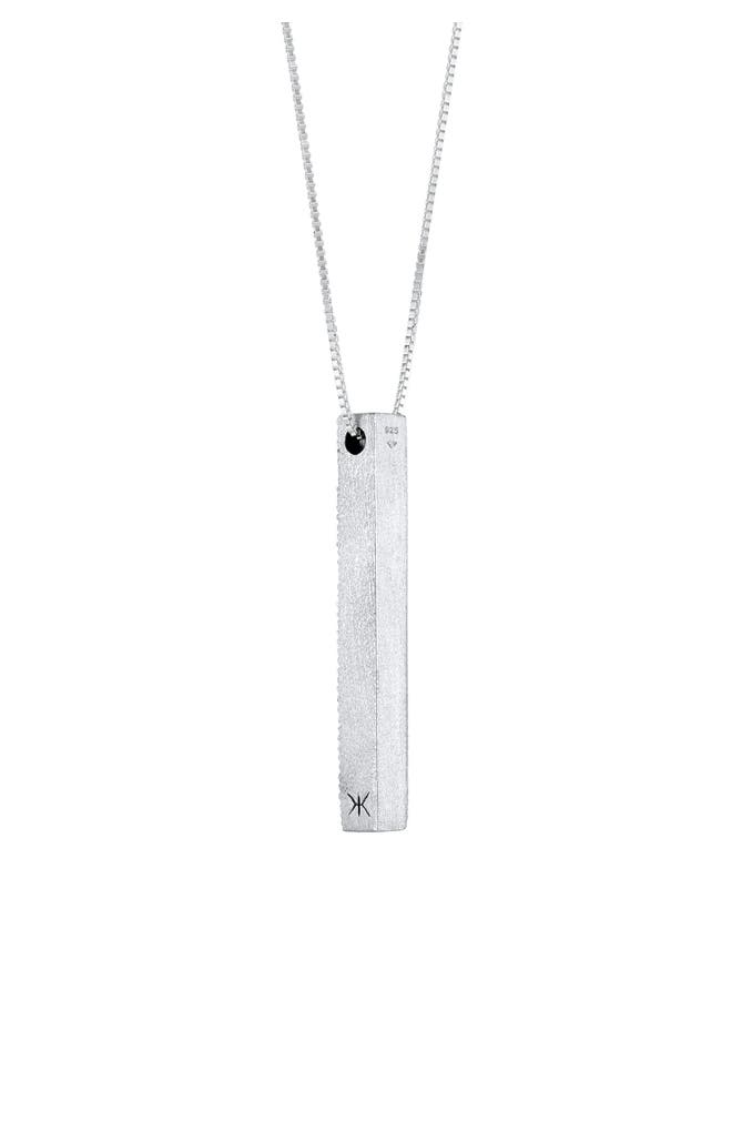 Puristisch im Design präsentiert sich diese lässige Halskette für Männer. Das trendige Schmuckstück ist mit einem maskulinen Barren Anhänger geschmückt. Durch seine kontraststärke Oberfläche ist dieses lässige Accessoire ein Hingucker und ist die ideale Ergänzung für den sportlich legeren Herren Look.