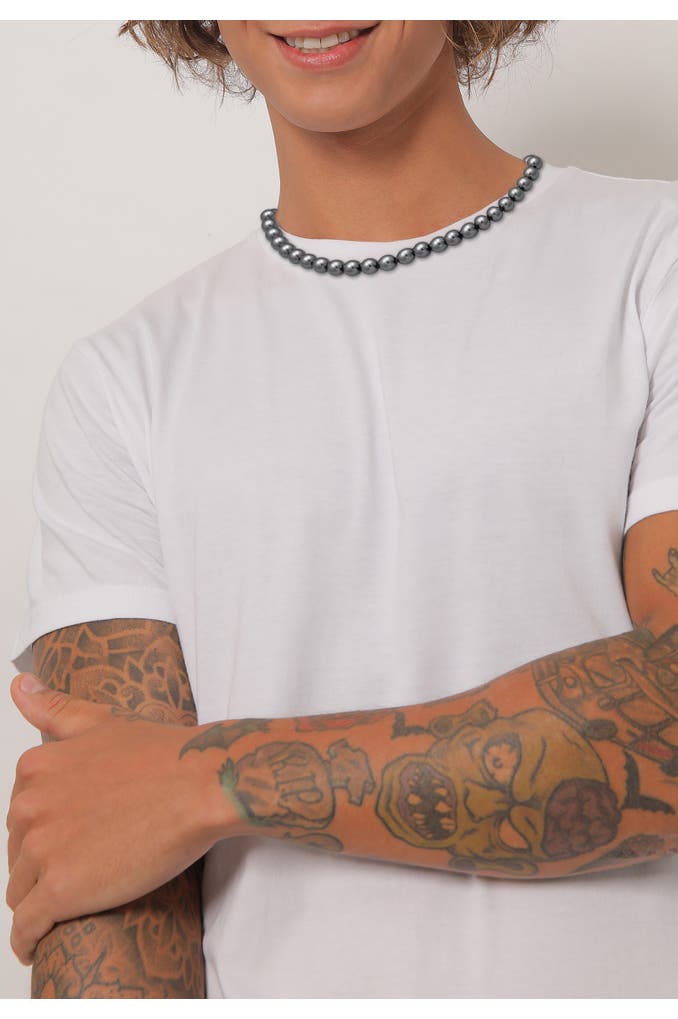 KUZZOIKette Herren Perlenkette 925 Silber, mit Perlen von Swarovski® Grau