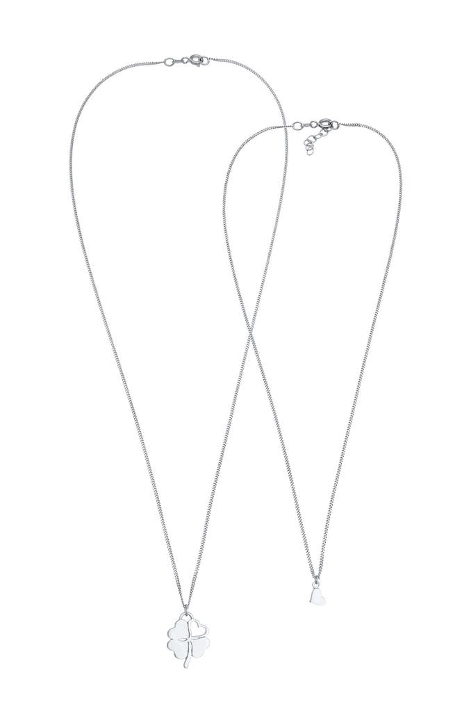 ELLIKette Herz Kleeblatt Mutter Kind Set (2 tlg) 925 Silber Silber