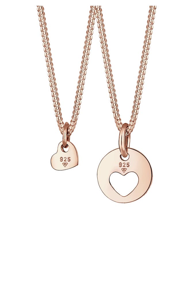 ELLIKette Herz Mutter Kind Cut Out Münze 925 Silber Rosegold