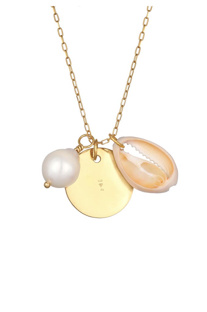 ELLI PREMIUMKette Kauri Muschel Plättchen Süßwasserperle 925 Silber Gold