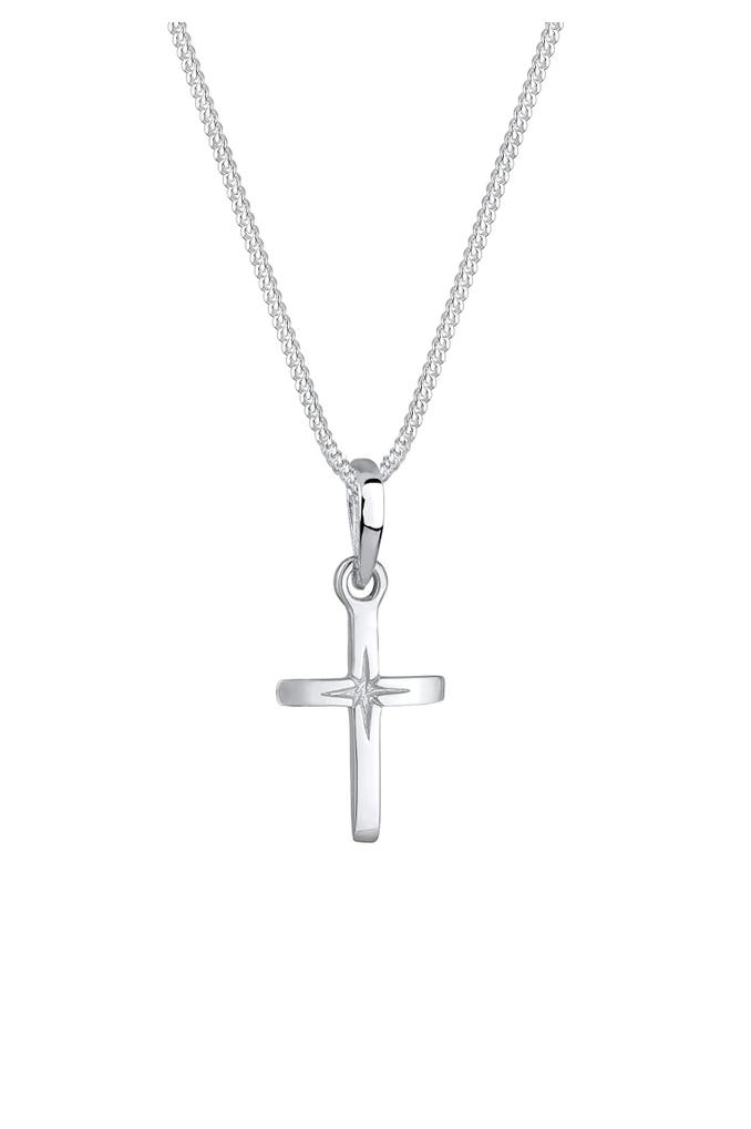 ELLIKette Kreuz Religion Stern Details 925 Silber Silber