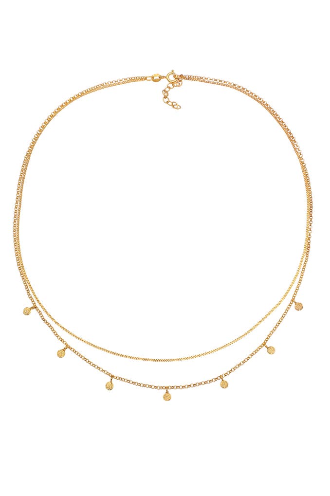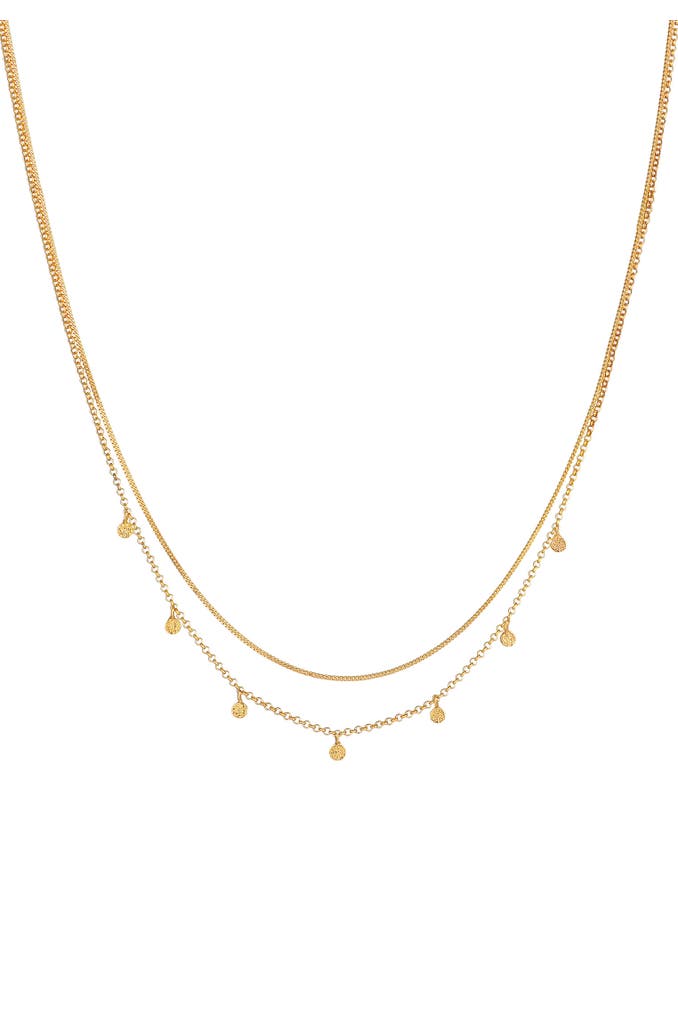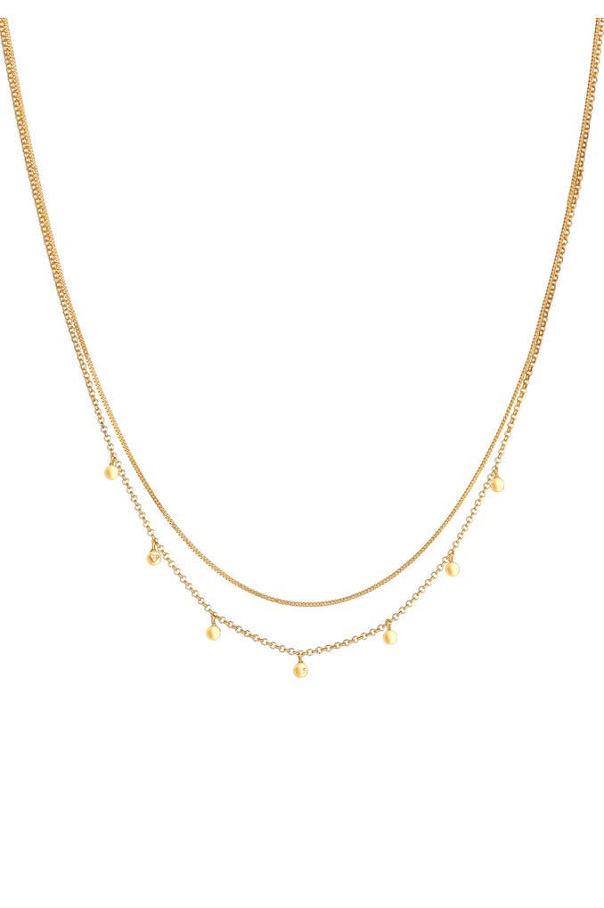 Diese zweireihige Halskette im raffinierten Layer Look, verleihen deinem Outfit das gewisse Etwas. Die feine kurze Panzerkette wird gekonnt mit einer verspielten Kette mit Erbsgliederung geziert. Die schlichten Coin Anhänger der langen Halskette sind ein Hingucker. Eine wunderbare Kombination und perfekter Allrounder für den Alltag.