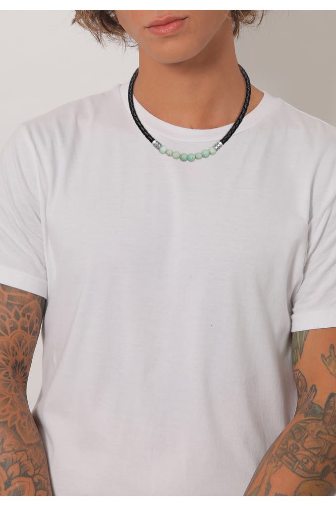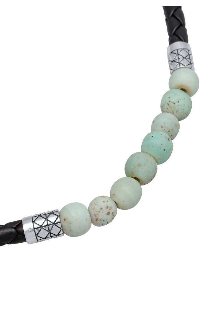 KUZZOIKette Lederkette Glas Beads 925 Silber Grün