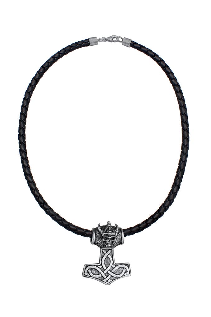 KUZZOIKette Lederkette Hammer Keltischer Knoten 925 Silber Silber