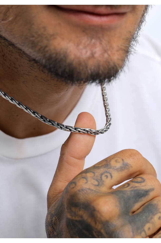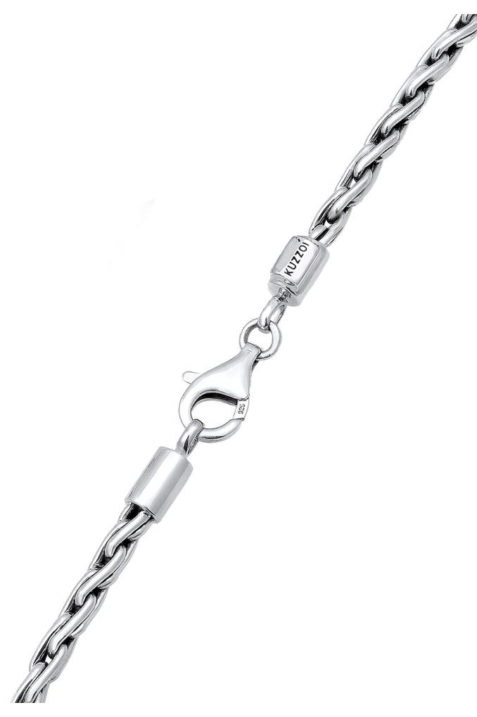 Formschöne Zopf Herrenkette mit glänzend polierten Gliedern aus 925 Sterling Silber. Bei dieser Kuzzoi Herren Halskette wurden die Gliederungen oxidiert, wodurch diese 4 mm Halskette einen Vintage Look erhält. Dieses coole Schmuckstück ist für alle Männer geeignet die auf dezent legere Outfits stehen. Die Halskette für Männer lässt sich mit einigen Anhängern kombiniere, da Sie filigran gearbeitet ist.