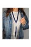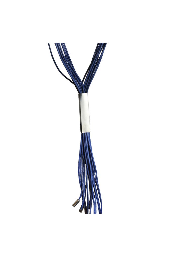 Textilkette blau 12-reihig mit silberfarbener Zierde und lange Quaste