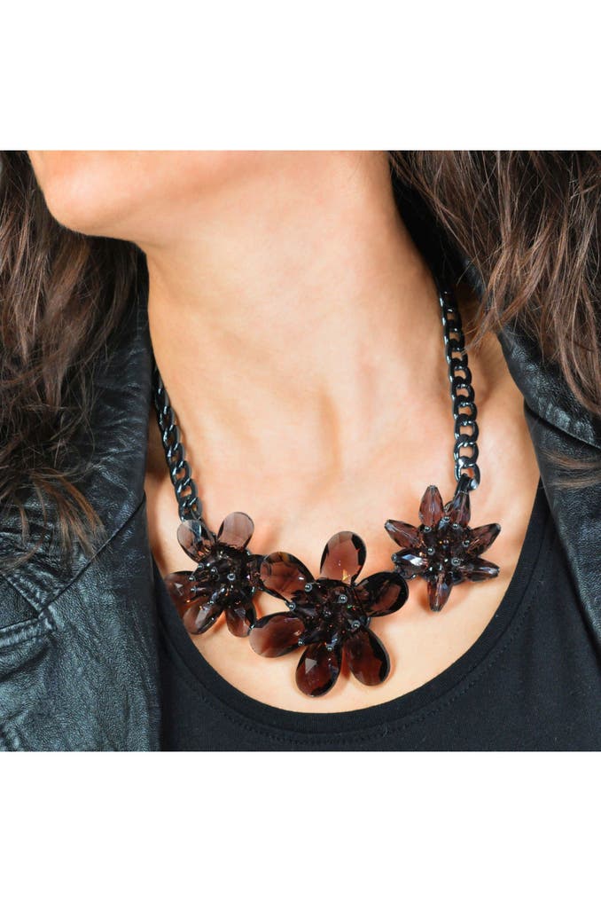 STEUERKette Metall schwarz Blume Blüte Glaskristall braun schwarz