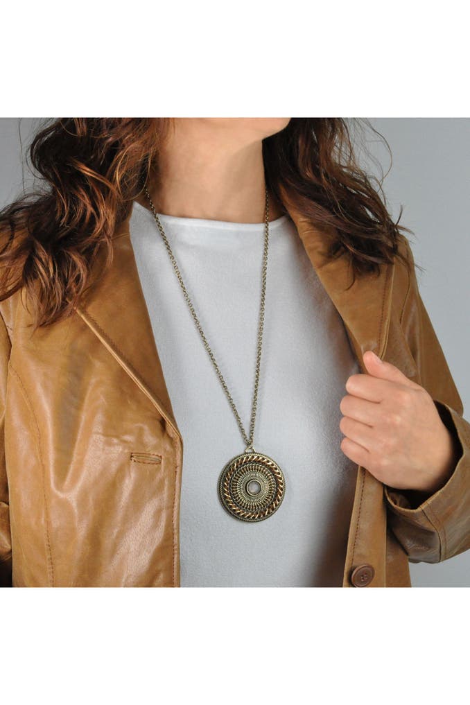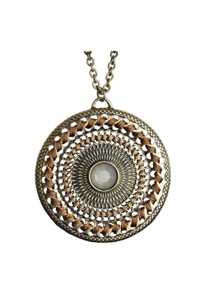 STEUERKette mit Mandala-Anhänger goldfarben mittig Glasstein mittelbraun
