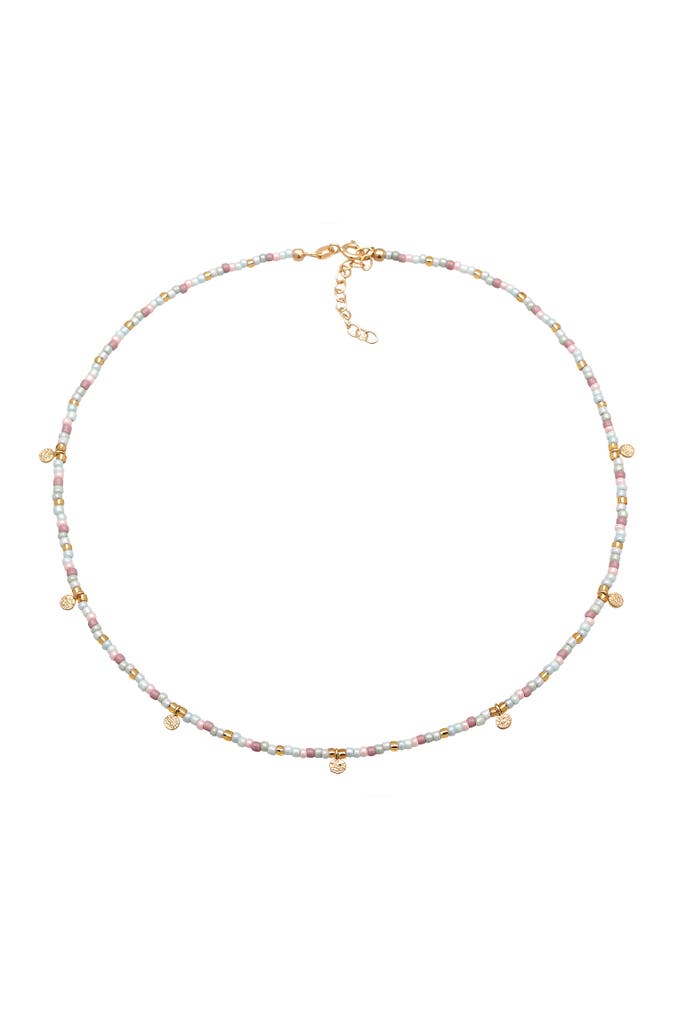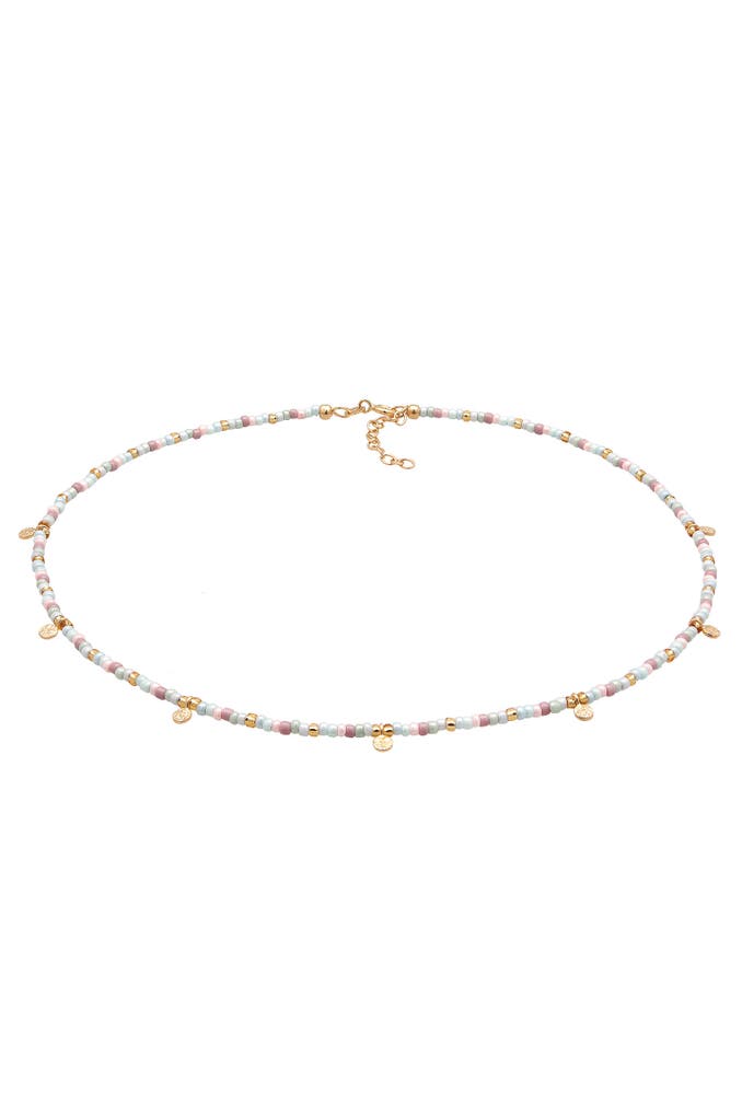 ELLIKette Plättchen Glas Beads Bunt 925 Silber vergoldet Zweifarbig
