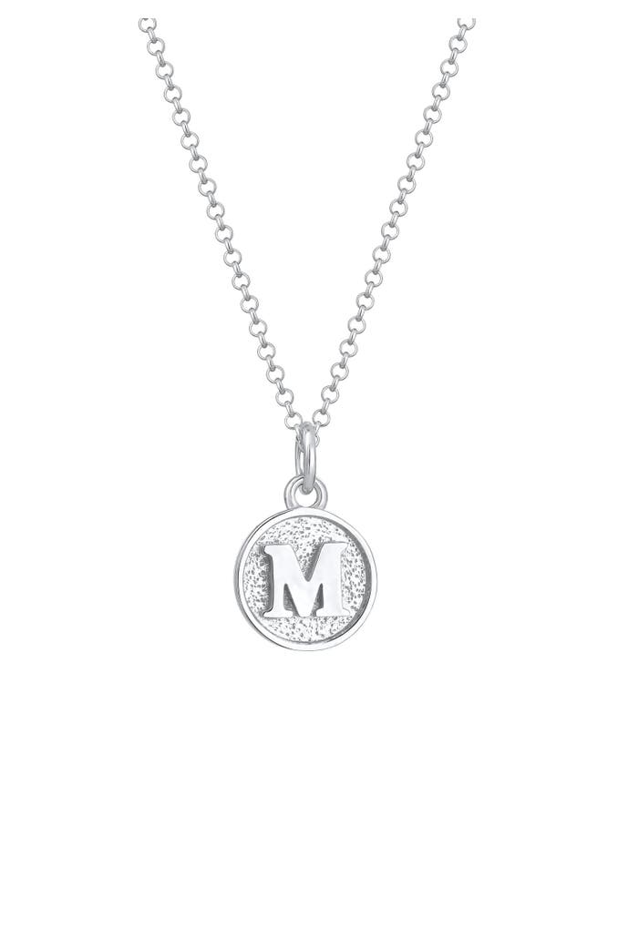 ELLIKette Plättchen Vintage Buchstabe M Initialen 925 Sterling Silber Silber
