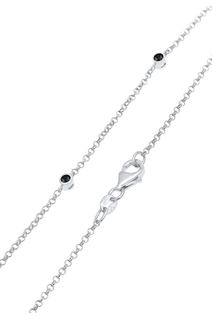 ELLIKette Solitär Glamourös Schwarz 925 Silber, mit Kristallen von Swarovski® Silber