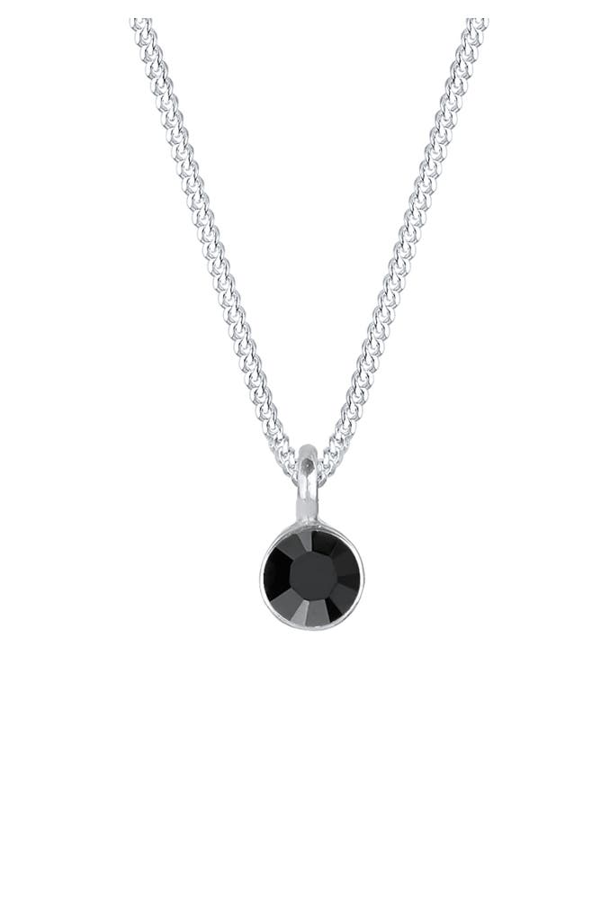 ELLIKette Solitär Glas Kristalle Schwarz 925 Sterling Silber Silber