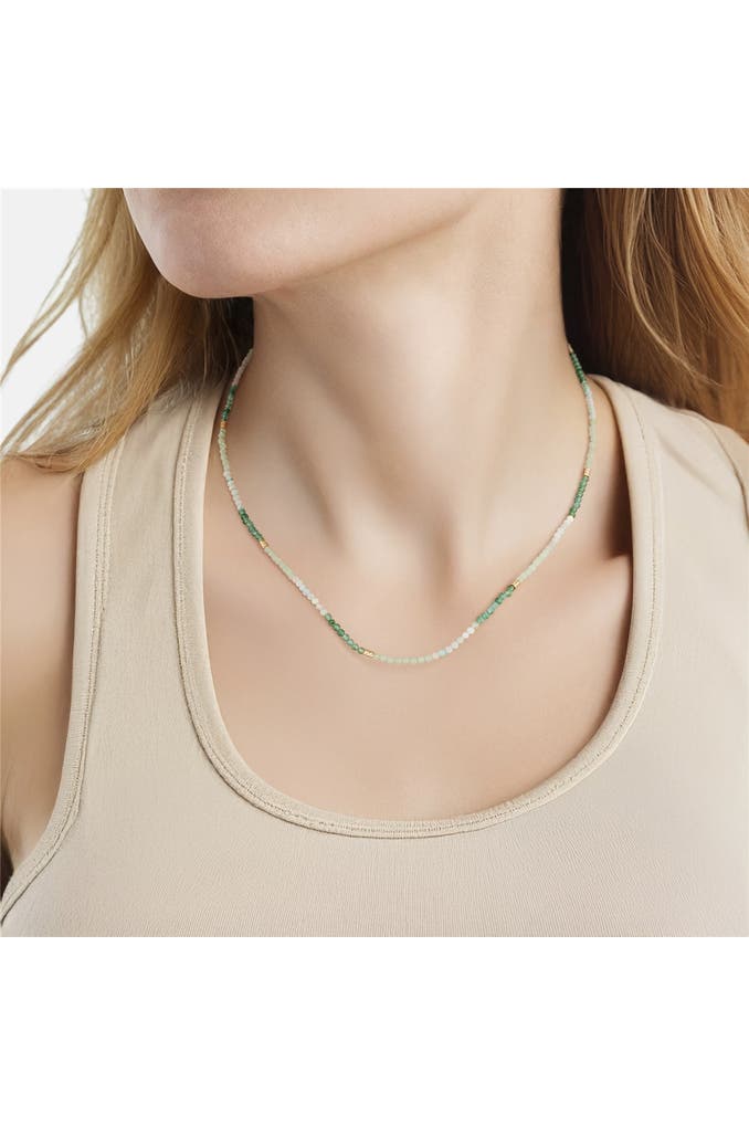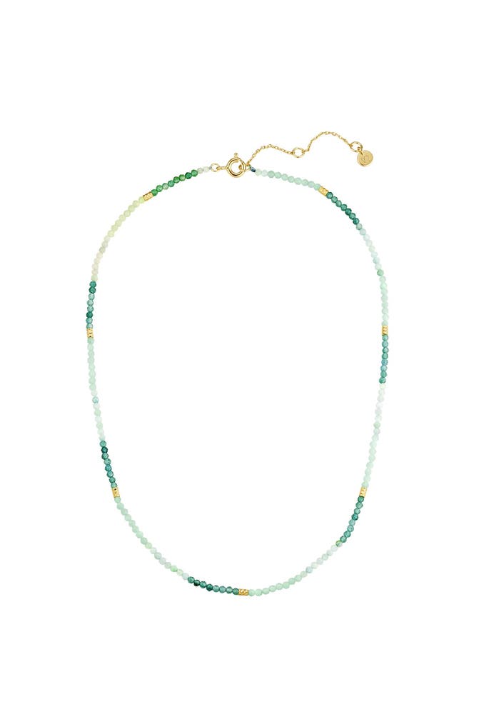 Du magst modernen Schmuck aus Natursteinen? Dann wird dir dieses peppige Collier des Labels Glanzstücke München gefallen. Mit markantem Farbwechsel schmiegt sich ein Strang Edelstein-Perlen aus facettiertem Amazonit und Aventurin in dein Dekolleté, edel akzentuiert durch eingestreute Metallperlen aus gelbvergoldetem Sterlingsilber. Amazonit und Aventurin - auch Glimmerquarz genannt - verleihen mit ihrer lebendigen Struktur jedem deiner Outfits eine Prise natürliche Schönheit. Praktisch: Ein Verlängerungskettchen mit Federringverschluss sorgt dafür, dass die Kette perfekt in deinem Ausschnitt sitzt.