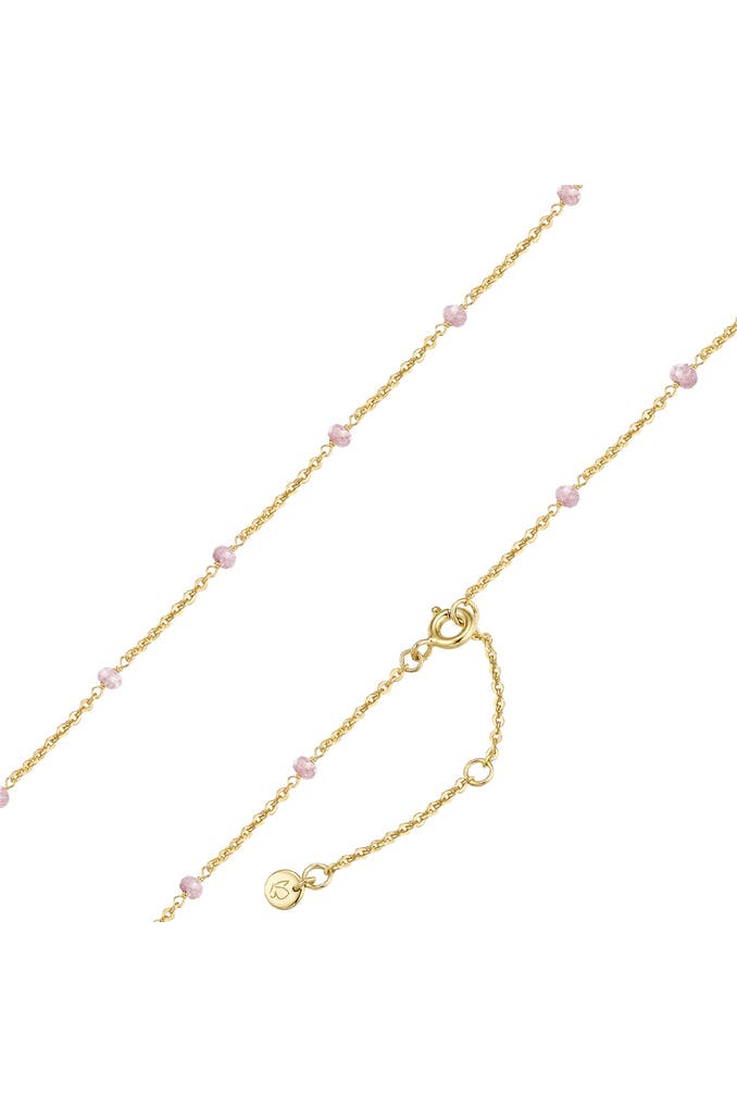 Du bist auf der Suche nach einem femininen Schmuckstück und kannst dich nicht zwischen Edelsteinen und Edelmetall entscheiden? Dann ist der Materialmix dieser Kette des Labels Glanzstücke München genau dein Ding: Die filigrane Ankerkette aus gelbvergoldetem Sterlingsilber ist besetzt mit präzise facettierten Kunzit-Perlen - ein bezaubernder Naturstein, der nach seinem Entdecker Frederik Kunz benannt ist. Der Tiffany-Edelsteinexperte erkannte das Potenzial des zart funkelnden Edelsteins und machte ihn als Schmuckstein populär. Ob für dich selbst oder als Geschenk: Die Kette ist ein wunderbarer Begleiter und ein stilvoller Eyecatcher im Dekolleté. Ein Verlängerungskettchen mit Federringverschluss sorgt für hohen Tragekomfort.