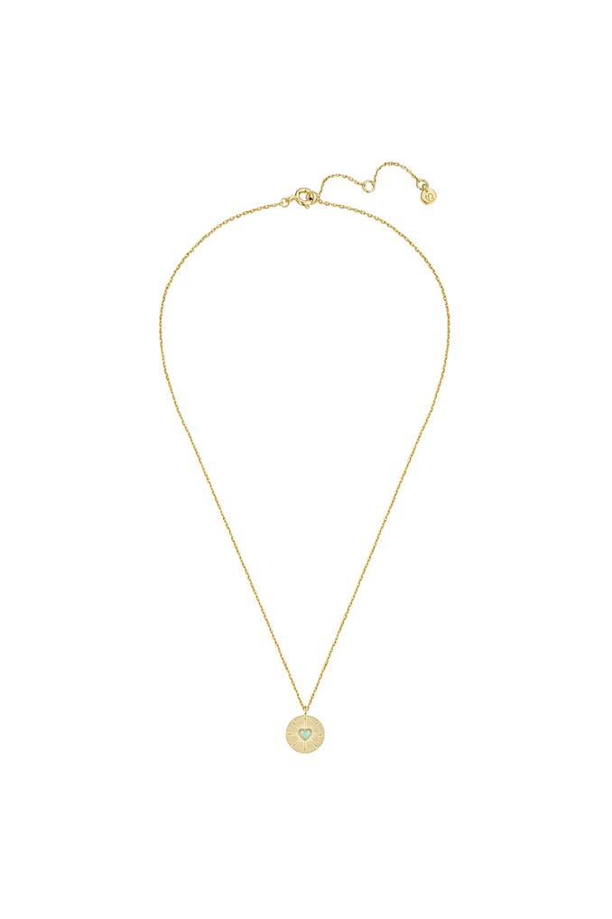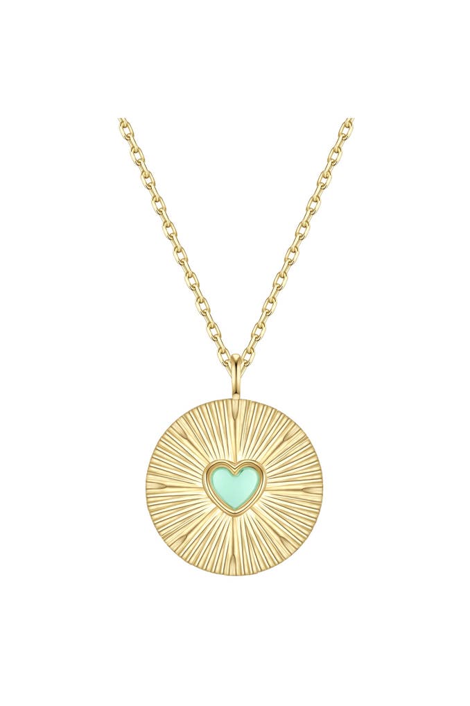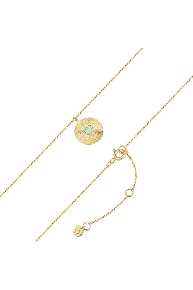 Auffällige Ketten liegen im Trend - so wie dieses Modell des Labels Glanzstücke München im Boho-Style. Blickfang ist die antik strukturierte Oberfläche des amulettförmigen Anhängers mit Sonnenmotiv, verziert mit einem herzförmigen Türkis-Inlay (rek.) Der farbprächtige Naturstein wurde schon im Altertum in vielen Kulturen als Glücksbringer verehrt und ist auch heute als Schmuckstein beliebt. Der Anhänger baumelt an einer zarten Ankerkette, beides gefertigt aus 925er Sterlingsilber und mit warm glänzendem Gelbgold veredelt. Dank Verlängerungsstück mit Federringverschluss lässt sich die Kette einfach in der Länge verstellen. Ein Accessoire, das nicht nur Festival-Outfits lässig aufwertet!