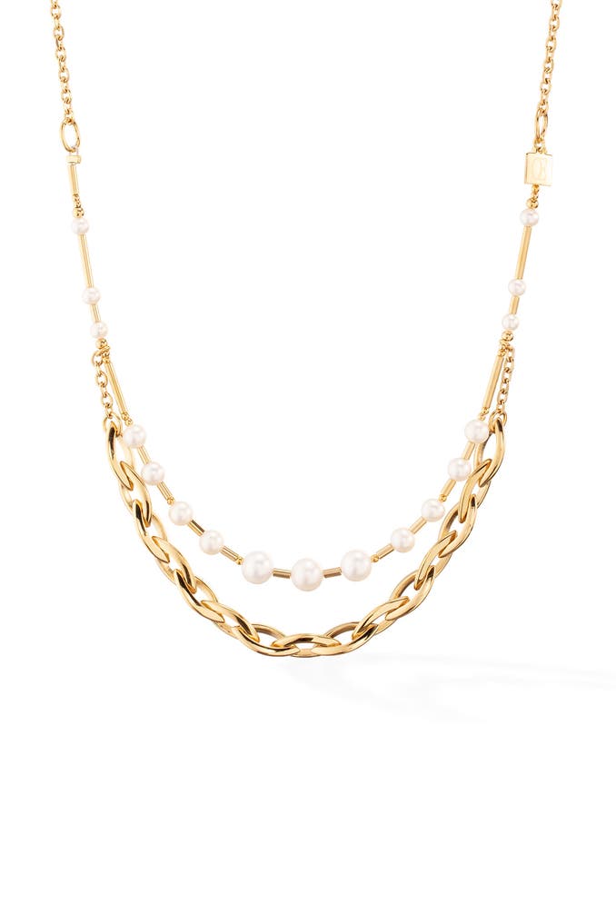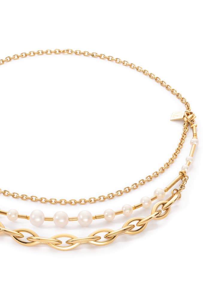 COEUR DE LIONKette Süßwasserperlen & Chunky Chain Navette Multiwear Weiß-Gold