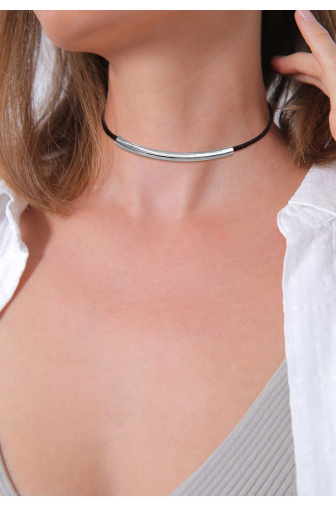 ELLIKette Veloureleder Synthetik Schwarz 925 Sterling Silber Silber