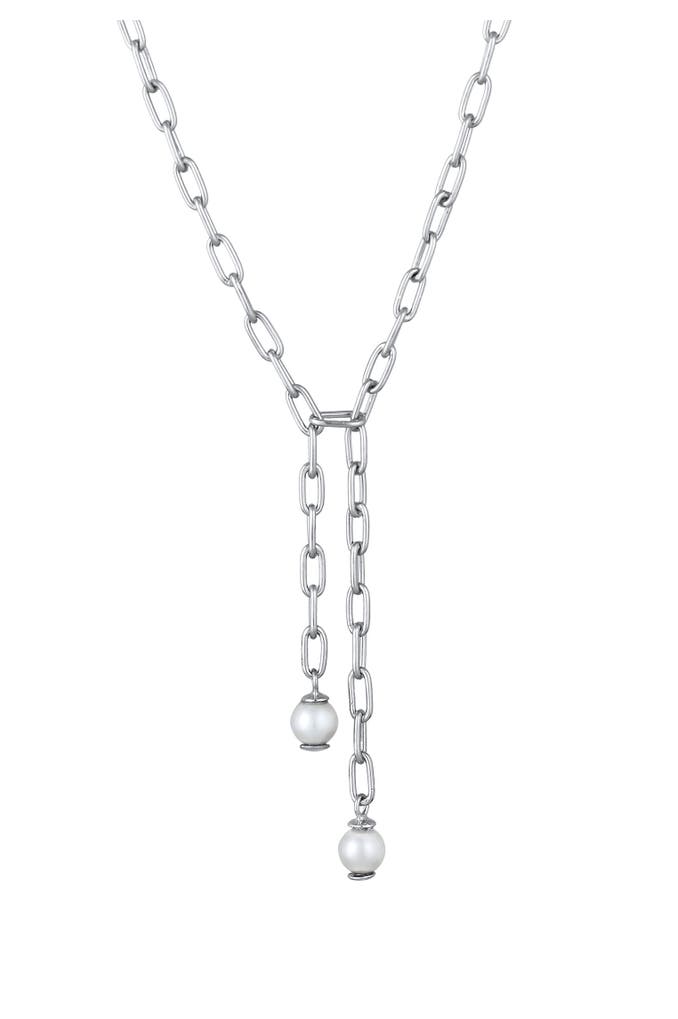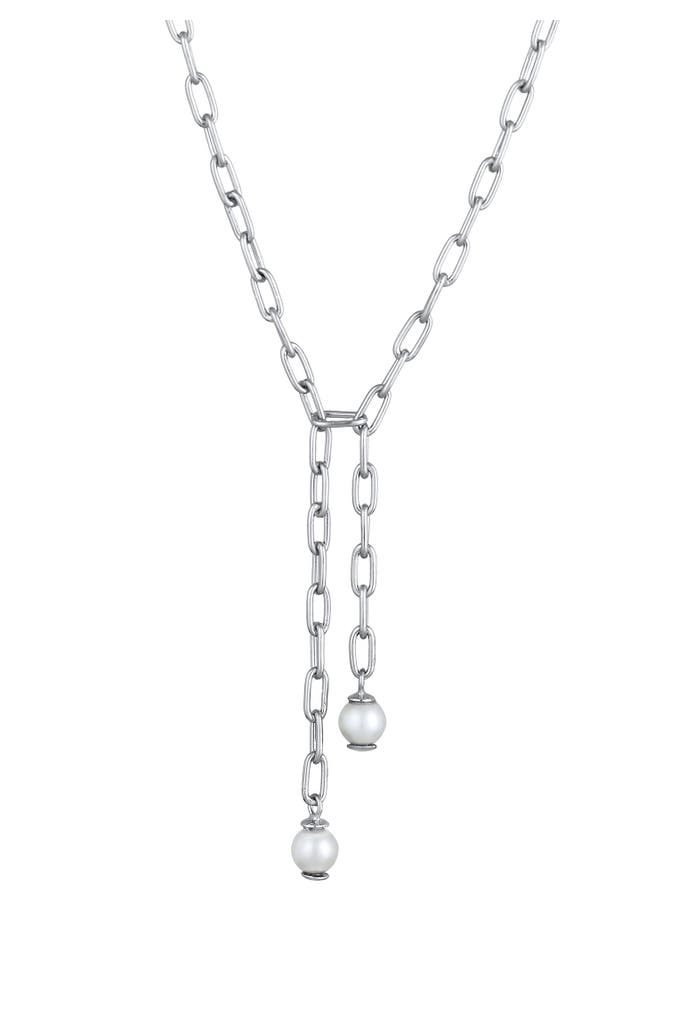 ELLI PREMIUMKette Y-Kette Gliederkette Synthetische Perle Weiß 925 Sterling Silber Silber