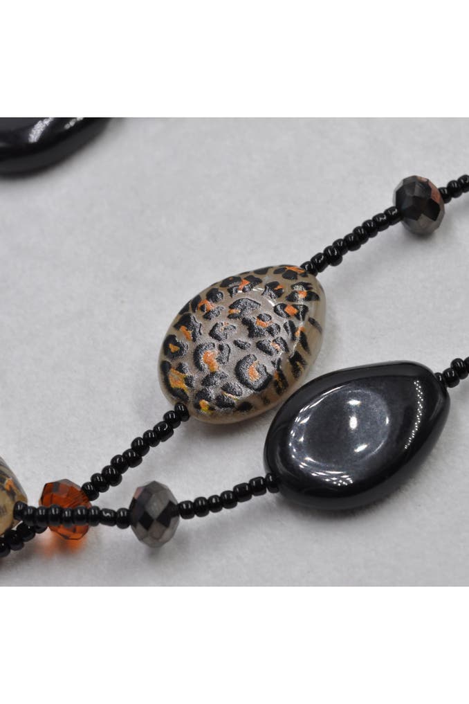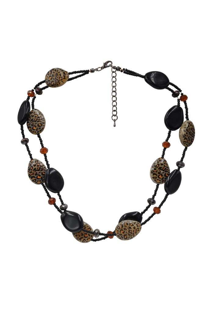 Collier zweireihig mit Kunststoff-Elementen in schwarz und braun Leoprint