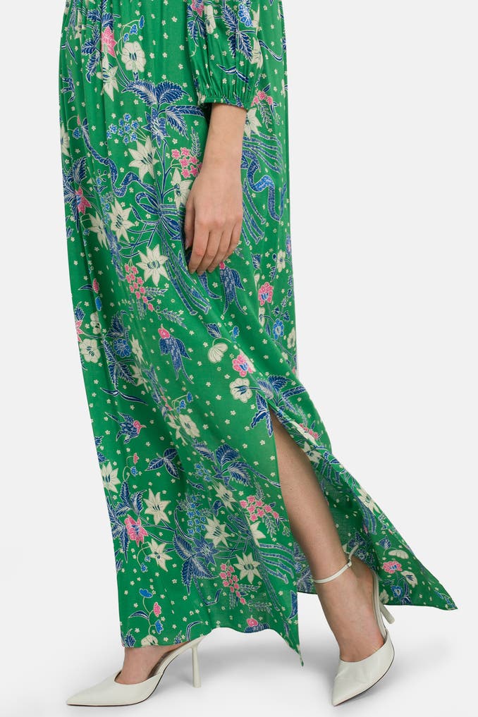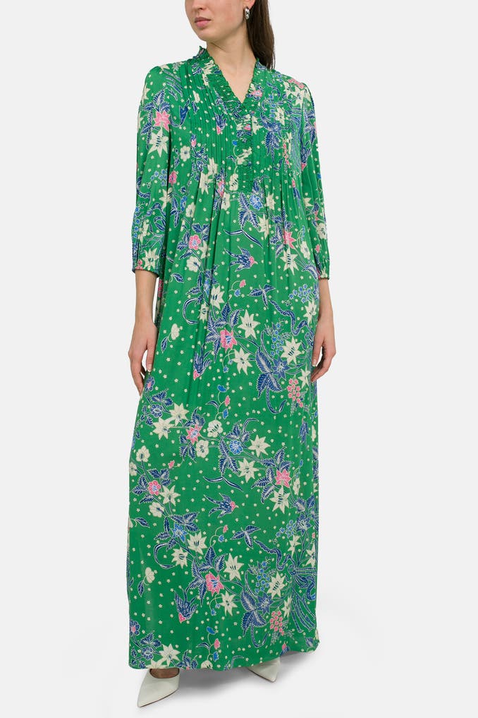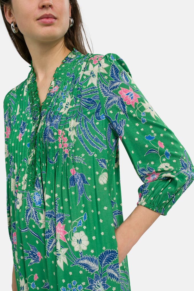 Holen Sie sich den sommerlichen Charme des Kleides 'Layla' von Diane von Furstenberg in Ihren Kleiderschrank! Das Grün gemusterte Kleid mit einem trendigen V-Ausschnitt und dreiviertelarm Ärmeln ist perfekt für entspannte Freizeit-Looks. Mit dem auffälligen Print ist dieses Kleid ein absolutes Must-Have für die warmen Tage! Gönnen Sie sich dieses hochwertige Designerstück und setzen Sie ein modisches Statement.