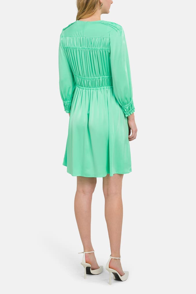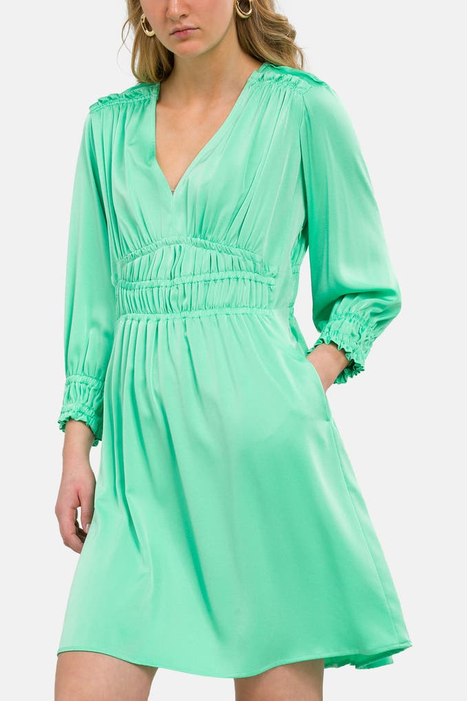 Verleihen Sie Ihrem Auftritt eine feminine Note mit diesem festlichen pastellgrünen Kleid von RIANI. Das Modell besticht durch seinen eleganten V-Ausschnitt und die Raffung, welche für eine wunderbare Silhouette sorgt. Die eingearbeiteten Eingrifftaschen verleihen dem Design zudem eine praktische Note.